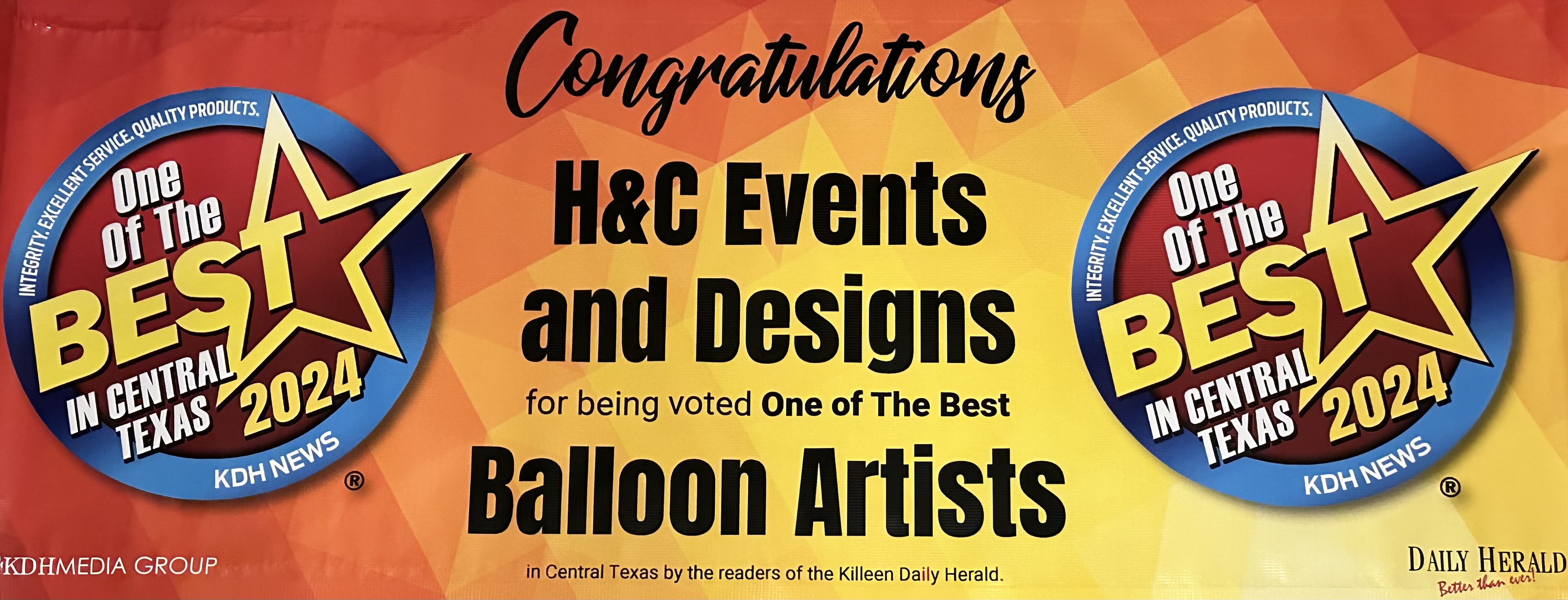 We are beyond excited and incredibly grateful to have been named one of the Best Balloon Artists in the Killeen Daily Herald’s Best of Central Texas Readers Poll 2024! 🏆🎉